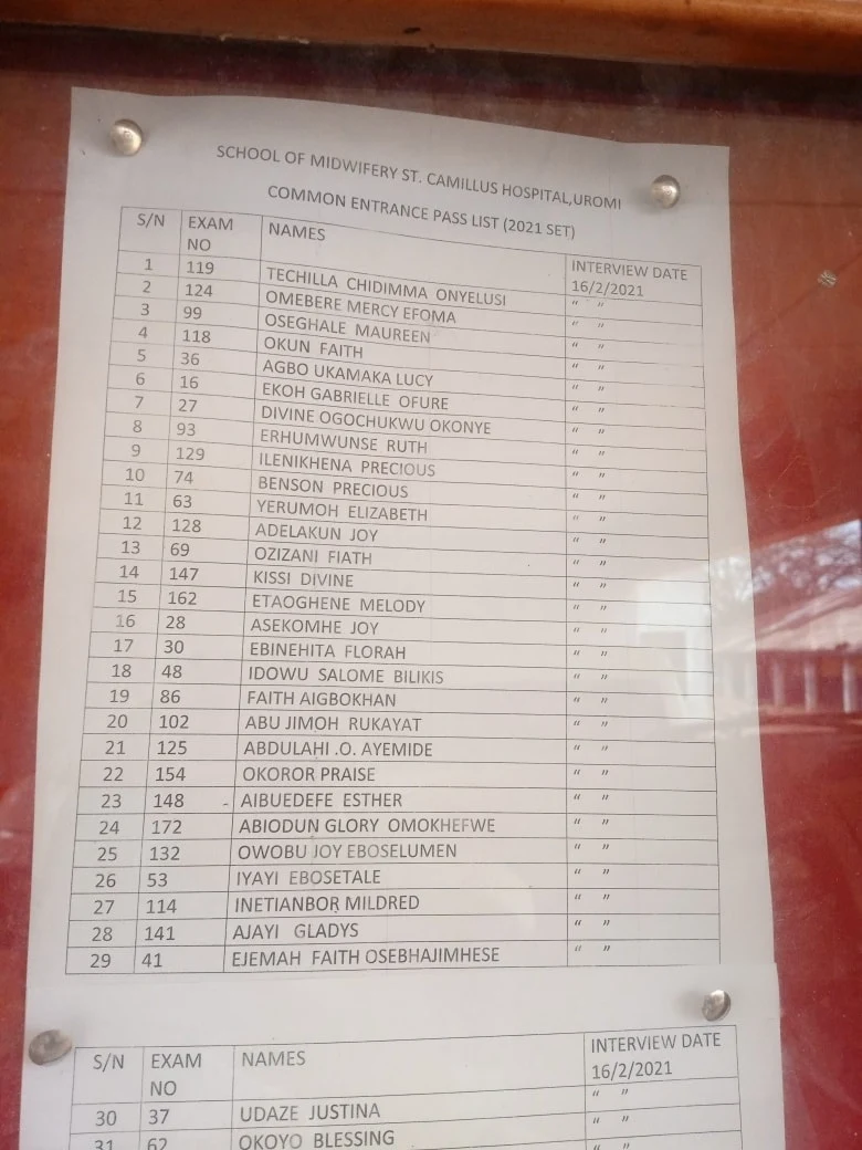 St. Camillus Hospital Uromi School of Midwifery Entrance Examination Result, Interview Dates, Time and Venue for 2020/2021 Academic Session.